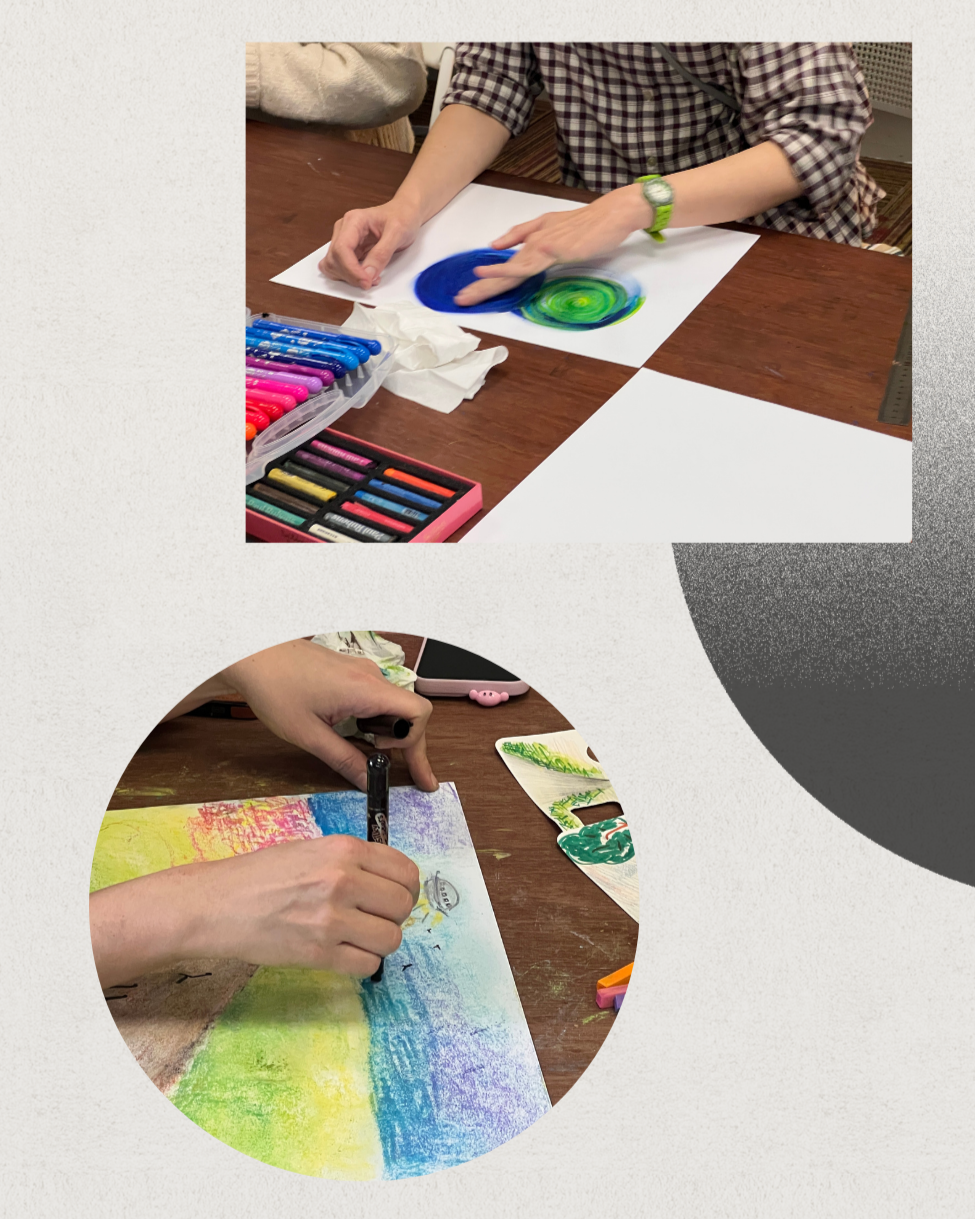 an art-therapy-informed workshop aimed at supporting staff in mindful self-reflections away from their working role through guided art directives and creative expressions.