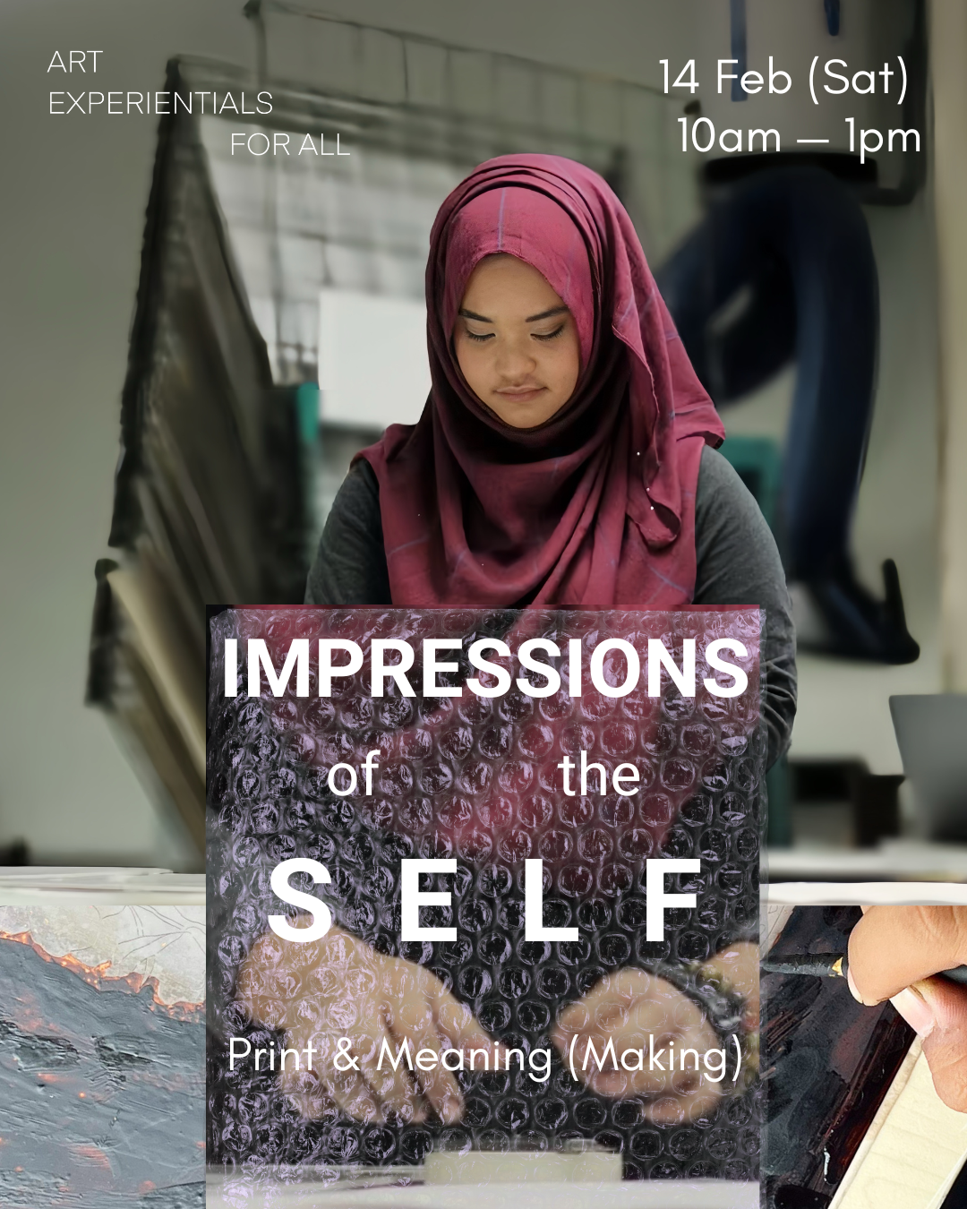 An art therapeutic workshop that invites participants to explore printmaking as a pathway to self-expression, reflection, and empowerment